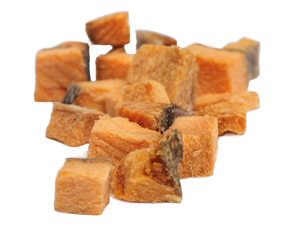 Ett naturligt och smakrikt godis gjort av 100 % frystorkad lax – utan tillsatser, konserveringsmedel eller onödiga ingredienser. Bara ren rĂ„vara med hög smaklighet.